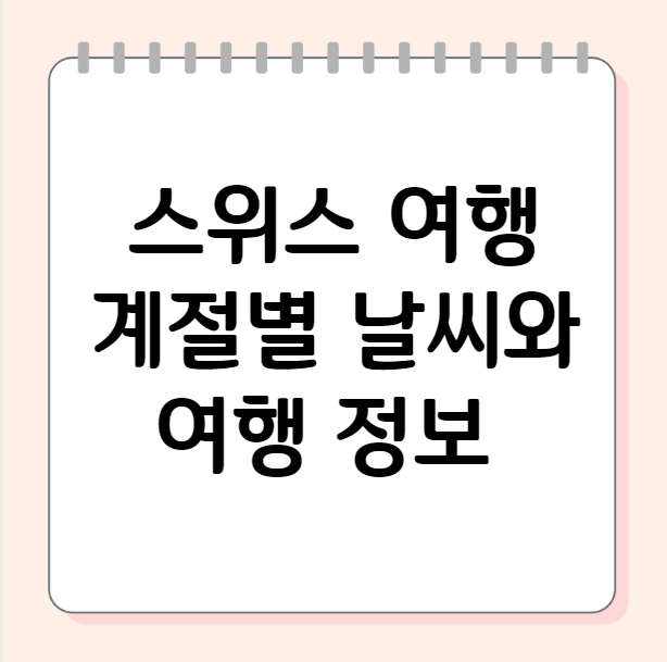 스위스, 아름다운 자연과 알프스의 웅장함, 그리고 깨끗한 도시로 유명한 곳이죠. 하지만 막상 스위스 여행을 계획하려니 어떤 계절에 가는 게 좋을지 고민이 되실 겁니다. 혹시 계절별 날씨와 여행하기 좋은 시기가 궁금하신가요? 걱정하지 마세요! 이 글에서는 스위스 여행의 꽃, 계절별 날씨와 여행 정보를 상세히 알려드립니다. 스위스의 매력적인 사계절을 탐험하고, 여러분에게 딱 맞는 여행 시기를 찾아 떠나세요!