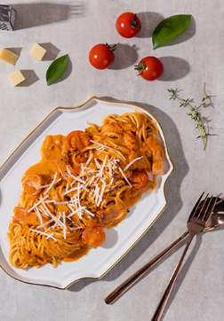 이탈리아어에서 로제 뜻하는 Rose는 장미라는 의미를 가지고 있습니다. 이탈리아에서는 분홍색을 나타내는 이 소스를 장미처럼 부르기 시작했으며, 크림과 토마토의 핑크색 결합이 장미색을 연상시키기 때문에 로제라고 불리게 되었습니다.